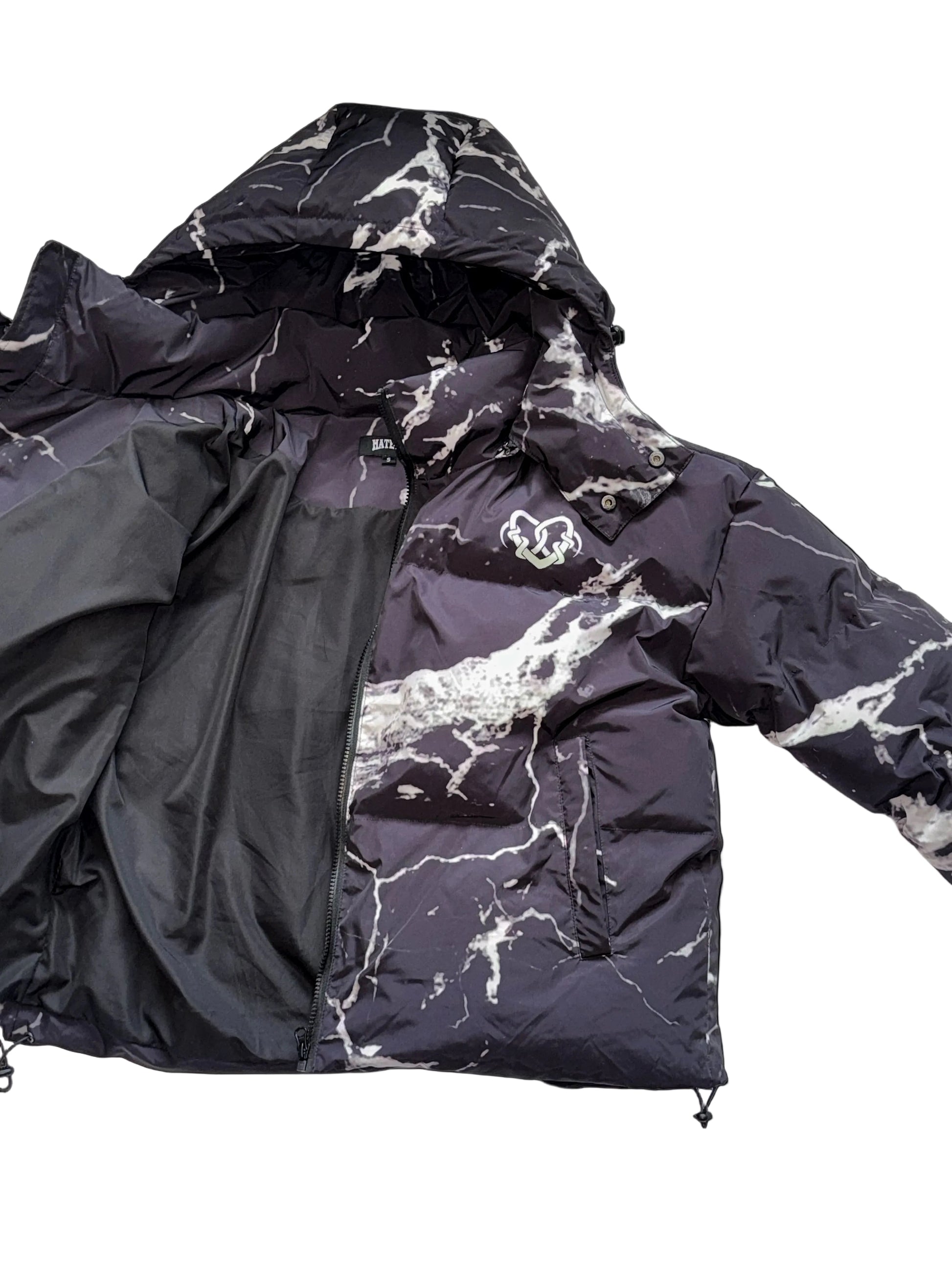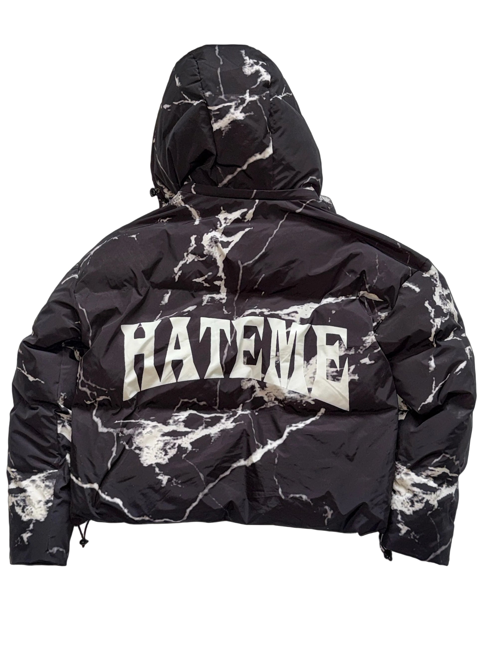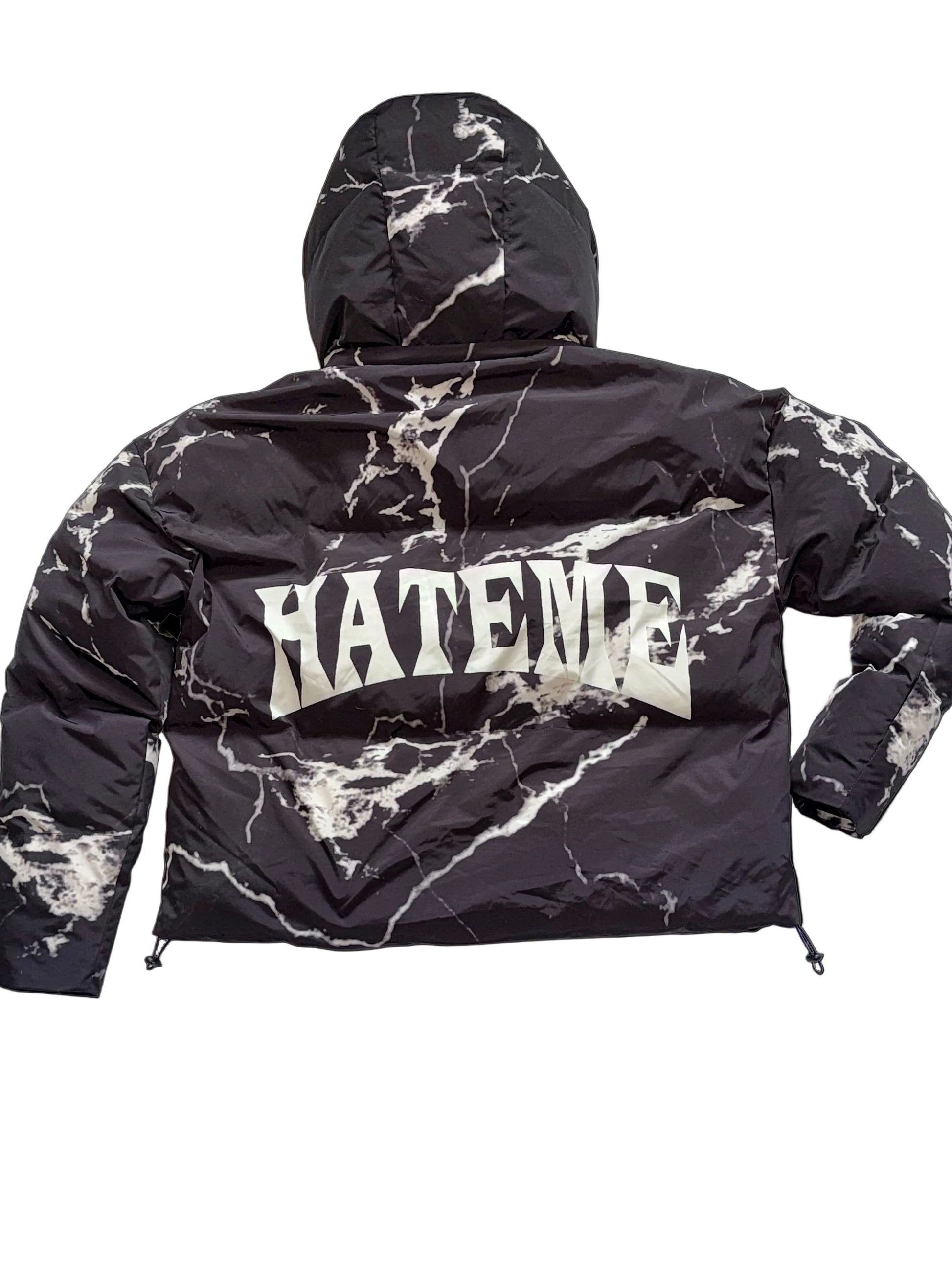 The Hate Me Puffer is a black, lightweight outerwear option designed to provide warmth in cold conditions without added bulk. Its optimal length and fit ensure ease of movement and a flattering silhouette, making it suitable for various activities while maintaining comfort and style.